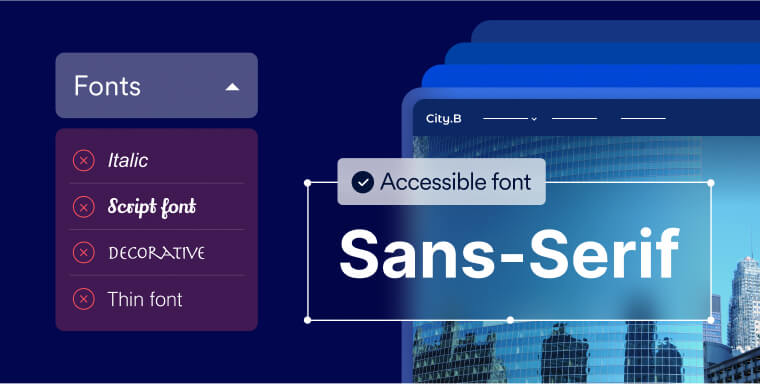 Another key consideration is the typeface itself. Serif fonts, which feature small lines or flourishes at the end of characters, may be unique and aesthetically pleasing. But they are much harder to read for people with vision impairments.